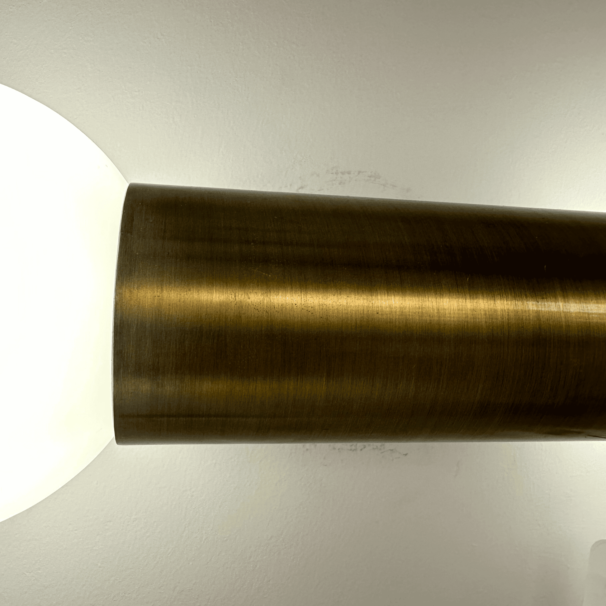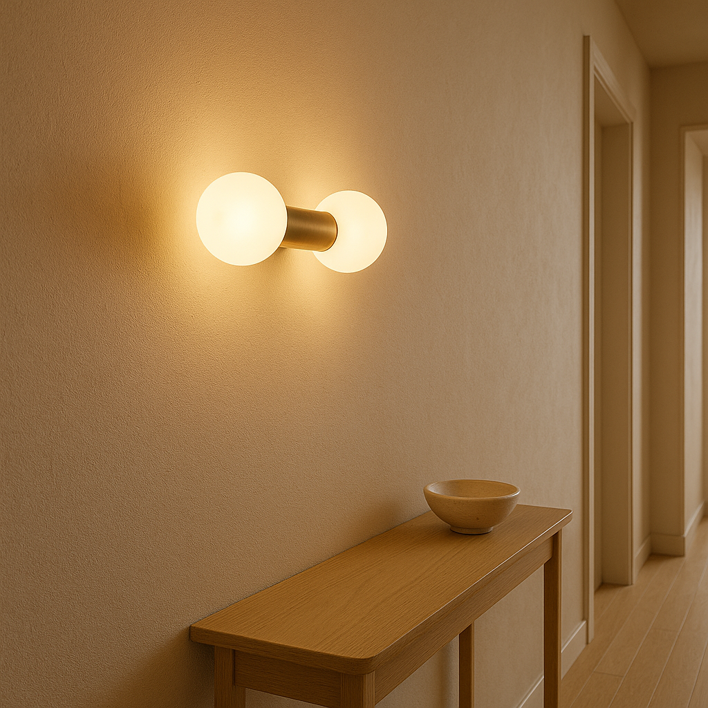 Its minimalist cylindrical body, paired with two softly glowing opal globes, offers both form and function—perfect for modern bathrooms, Japandi-inspired bedrooms, or transitional hallways.