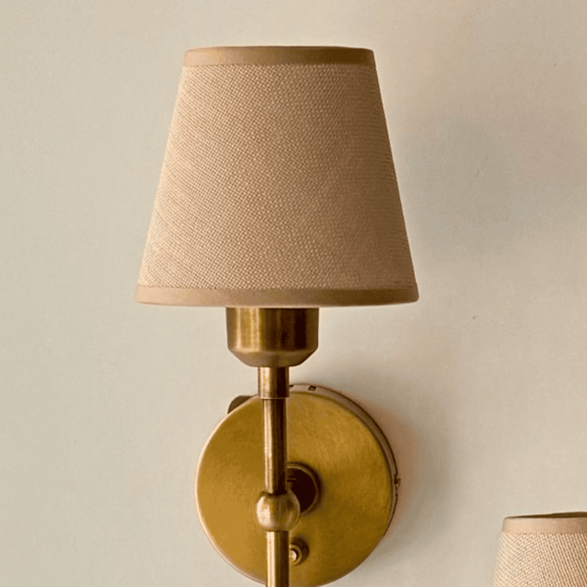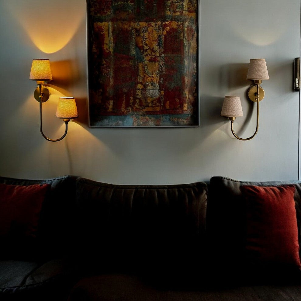The Dual Shade Fabric Wall Sconce combines soft textile elegance with a bold metal frame to offer ambient lighting and timeless style. Its layered fabric diffuser and refined metal finishes make it a perfect fit for bedrooms, hallways, or upscale interiors.