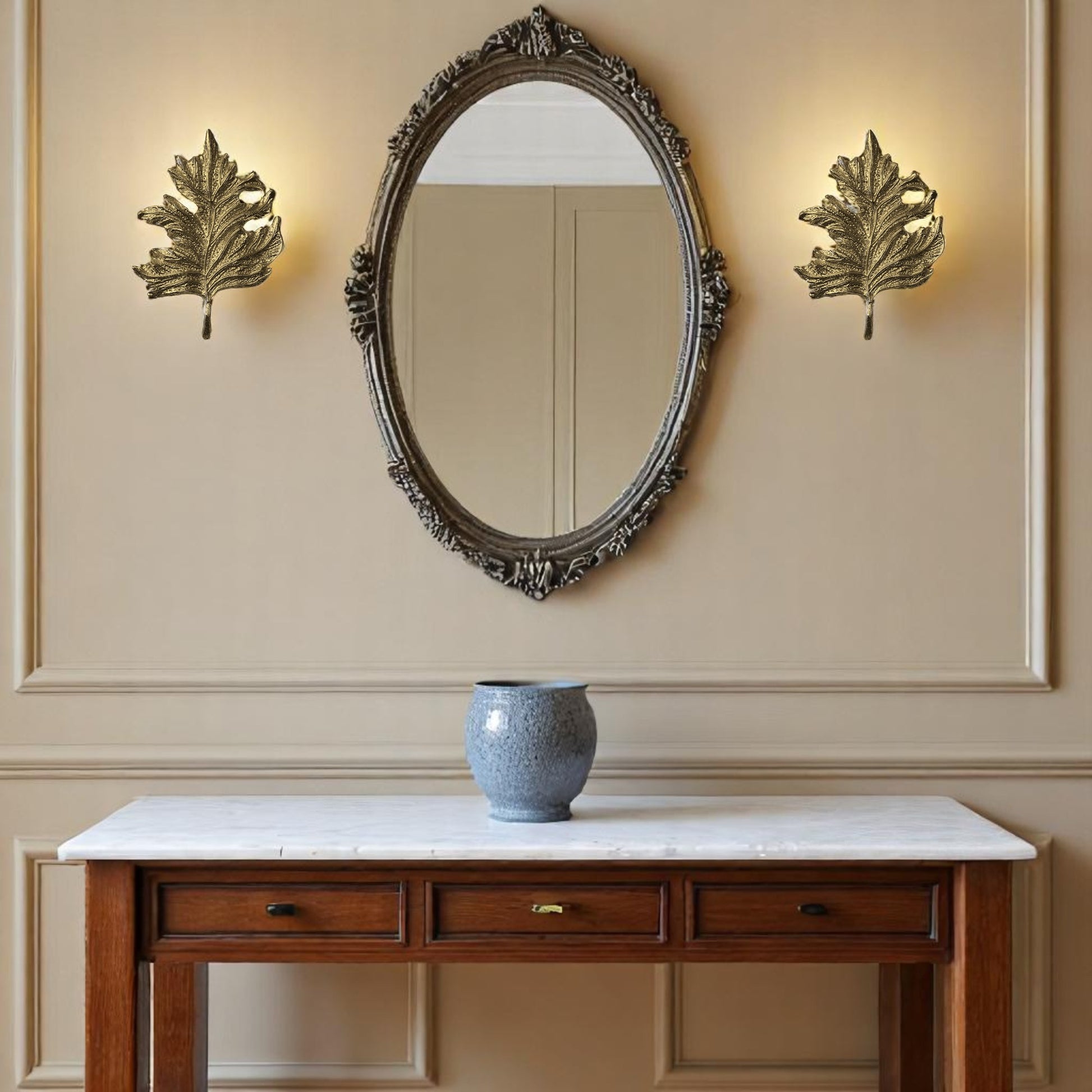 Gold Leaf Wall Sconce – Elegant Nature-Inspired Brass Light Fixture for Hallway, Bedroom, Powder Room | Handmade Accent Lighting