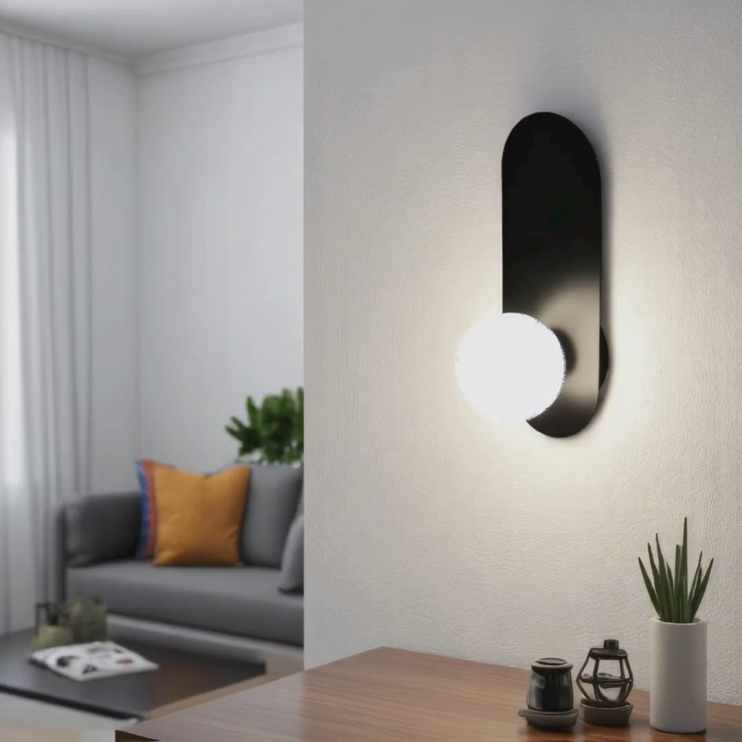 Bring architectural elegance to your interiors with our handcrafted matte black wall sconce. Featuring an elongated oval backplate and a glowing opal glass globe, this sculptural fixture blends minimalism with functional sophistication.