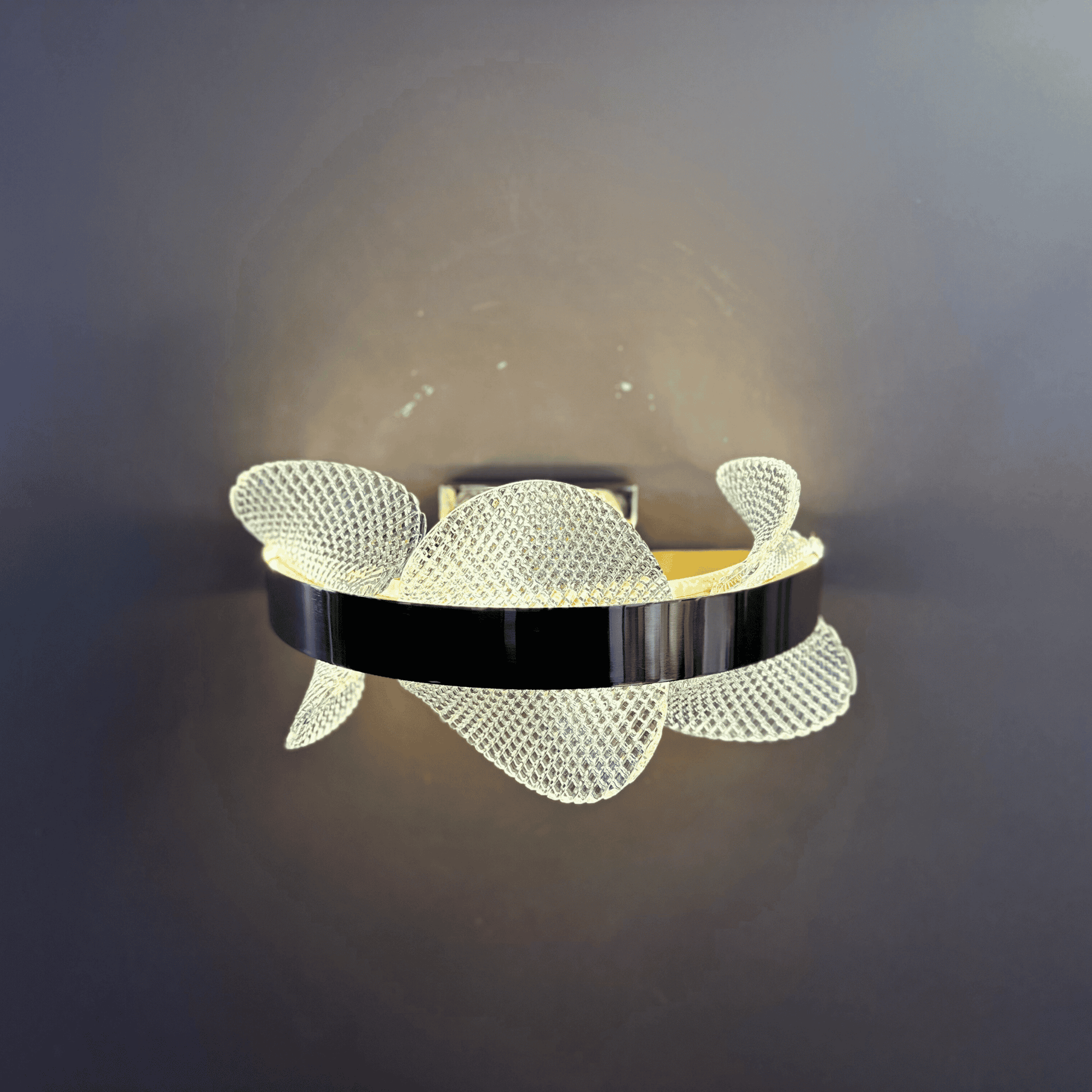 A sculptural LED wall sconce with layered pleksi wings and a central metallic accent ā designed to cast ambient light with elegance and ease.